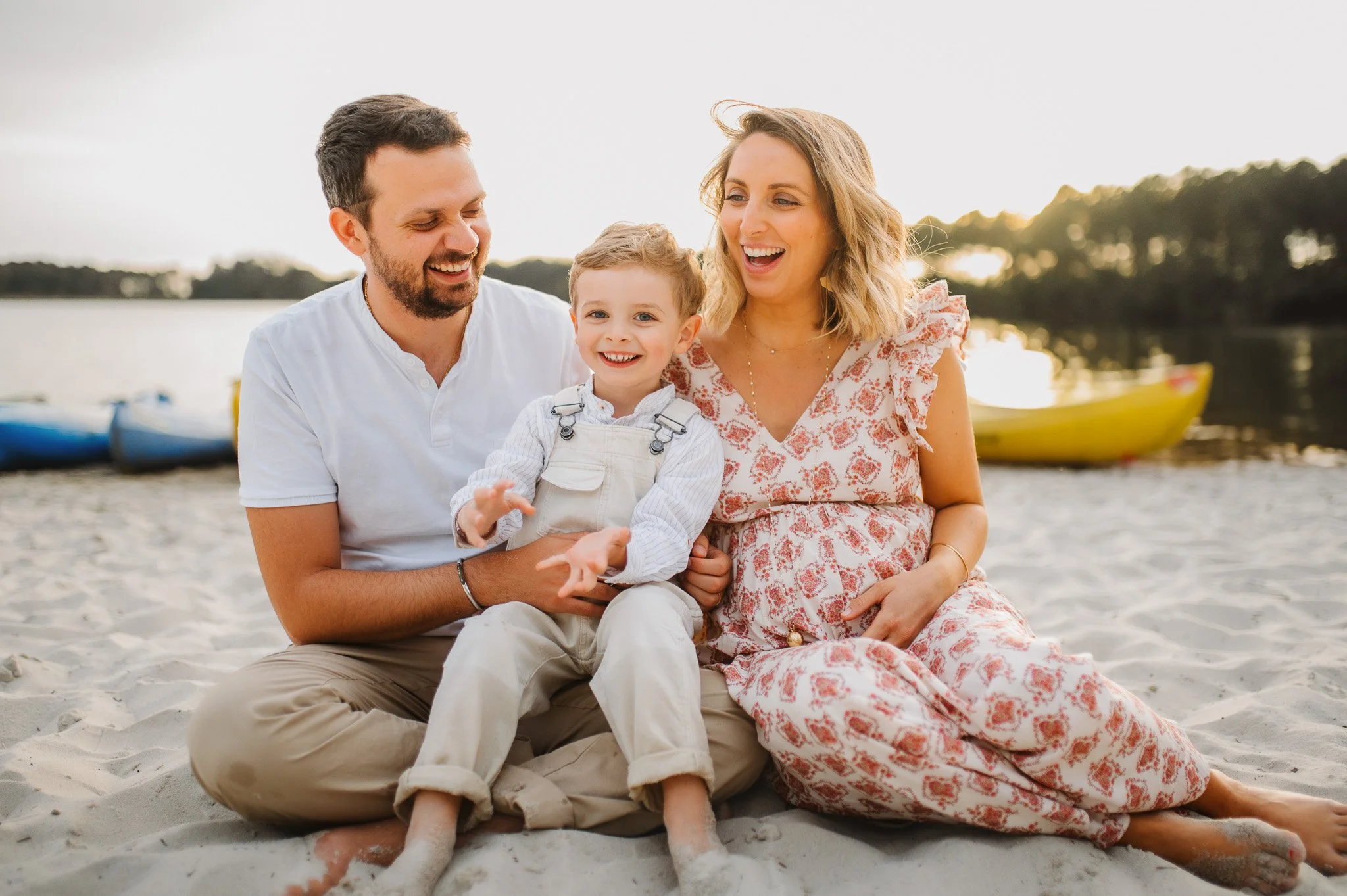 Au coucher de soleil au bord de la plage ou dans votre maison, une séance famille est un moment pour se détendre ensemble sans stress.